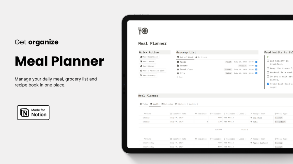 You'll get a meal planner Notion template