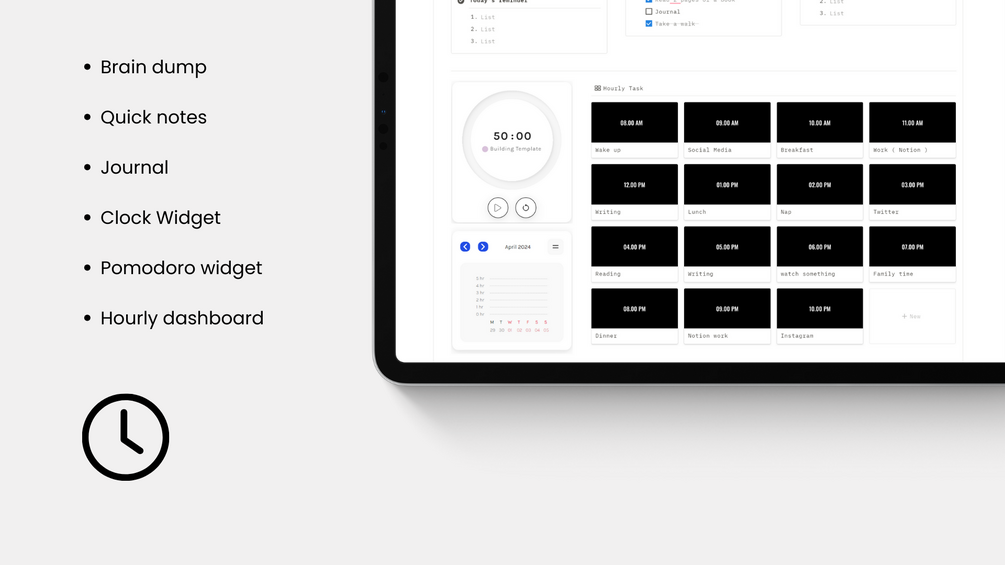 - Pomodoro widget to track your routine and work hours