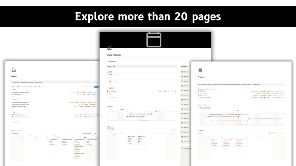 - Time-Boxing Planner: Dive into laser-focused productivity. Break down your day into manageable time blocks and conquer your most important tasks with total concentration.